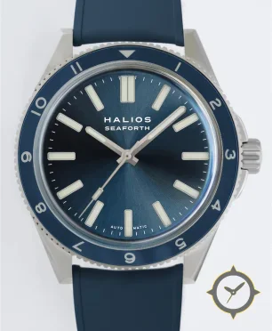 A Dive watch with a bold 43mm presence on the wrist, crafted from stainless steel featuring a blue dial with a unique sunburst finish.