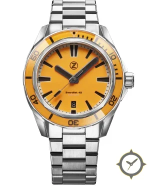 A Dive watch with a vintage-inspired 35mm case, crafted from stainless steel featuring a orange dial with a unique matte finish.