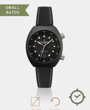 A watch with a bold 43.5mm presence on the wrist, crafted from Coating featuring a black dial with a unique meteorite-like textured black finish.