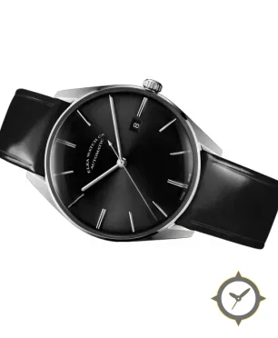 A Dress watch with a vintage-inspired 35.5mm case, crafted from stainless steel featuring a black dial with a unique sunburst finish.