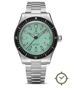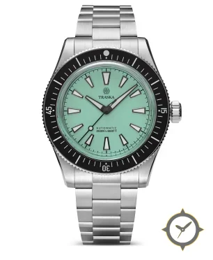 A Dive watch with a versatile 39mm case, that suits most wrists, crafted from stainless steel featuring a turquoise dial with a unique matte finish.