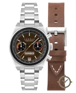 A Chronograph watch with a bold 47.5mm presence on the wrist, crafted from stainless steel featuring a brown dial with a unique sunburst / gradient finish.