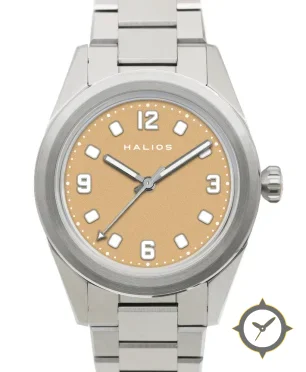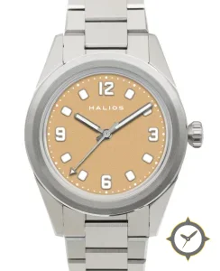 A Field watch with a vintage-inspired 37.5mm case, crafted from stainless steel featuring a brown dial with a unique grained / sand-like texture finish.