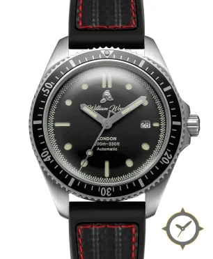 A Dive watch with a bold 49mm presence on the wrist, crafted from stainless steel featuring a black dial with a unique matte finish.