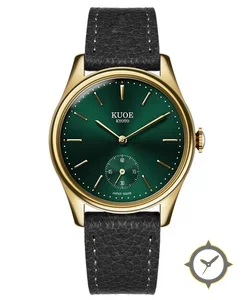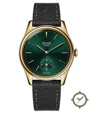 A Dress watch with a vintage-inspired 31mm case, crafted from gold featuring a green dial with a unique sunburst finish.