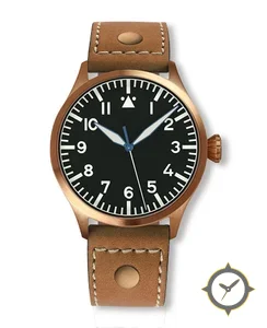A Pilot watch with a bold 43mm presence on the wrist, crafted from bronze featuring a black dial with a unique matte finish.