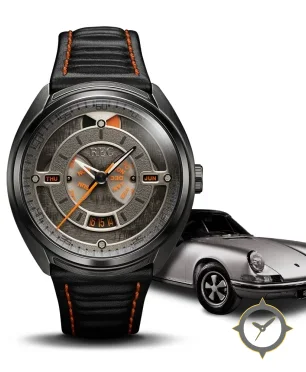 A Driver watch with a bold 44.5mm presence on the wrist, crafted from stainless steel featuring a gray dial with a unique weathered / machined grain finish.