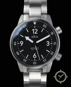A Dive watch with a vintage-inspired 36mm case, crafted from stainless steel featuring a black dial with a unique matte finish.