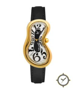 A Dress watch, crafted from gold featuring a white dial with a unique glossy finish.