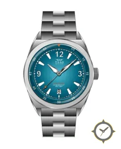 A Dive watch with a vintage-inspired 35.5mm case, crafted from stainless steel featuring a blue dial with a unique sunburst (vertical gradient) finish.