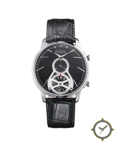 A Dress watch with a vintage-inspired 36.5mm case, crafted from stainless steel featuring a black dial with a unique matte finish.