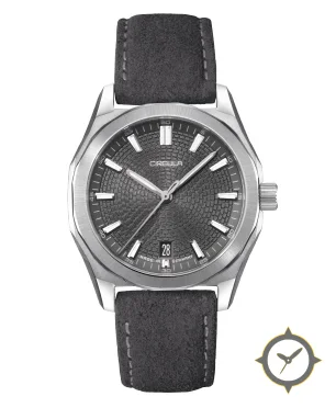 A Sports watch with a bold 42.5mm presence on the wrist, crafted from stainless steel featuring a gray dial with a unique engine-turned / basketweave guilloché finish.