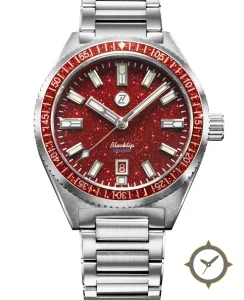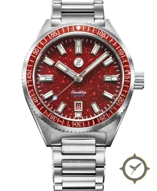 A Dive watch with a versatile 41mm case, that suits most wrists, crafted from stainless steel featuring a red dial with a unique sparkling metallic finish.
