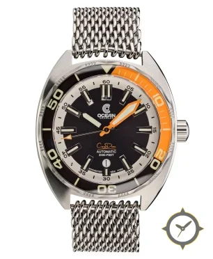 A Dive watch with a bold 49.5mm presence on the wrist, crafted from stainless steel featuring a black dial with a unique sunburst (two-tone sector with silver outer ring) finish.