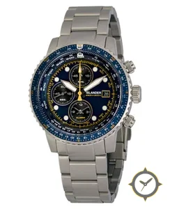 A Pilot watch with a bold 43mm presence on the wrist, crafted from stainless steel featuring a blue dial with a unique sunburst finish.