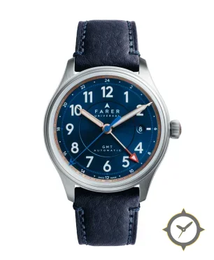 A watch with a vintage-inspired 36.5mm case, crafted from stainless steel featuring a blue dial with a unique sunburst finish.