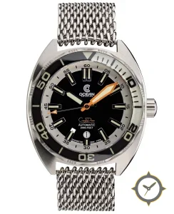 A Dive watch with a vintage-inspired 35.5mm case, crafted from stainless steel featuring a black dial with a unique matte finish.