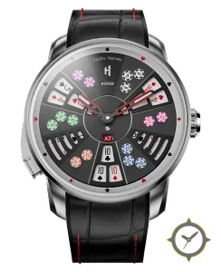 A Dress watch with a bold 41.5mm presence on the wrist, crafted from stainless steel featuring a black dial with a unique matte with layered raised sectors finish.