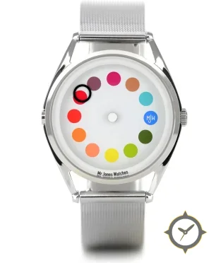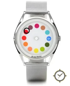 A Minimalist watch with a bold 41.5mm presence on the wrist, crafted from stainless steel featuring a white dial with a unique matte finish.