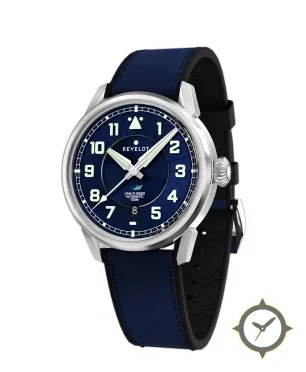 A Pilot watch with a vintage-inspired 36mm case, crafted from stainless steel featuring a navy dial with a unique sunburst finish.
