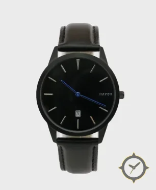 A Minimalist watch with a vintage-inspired 34.5mm case, crafted from stainless steel featuring a black dial with a unique matte finish.