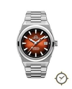 A Sports watch with a bold 46mm presence on the wrist, crafted from stainless steel featuring a brown dial with a unique sunburst finish.
