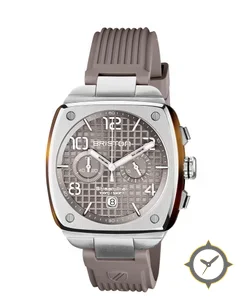 A Chronograph watch with a bold 43.5mm presence on the wrist, crafted from stainless steel featuring a gray dial with a unique waffle / textured grid finish.