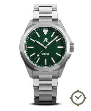 A Sports watch with a bold 43mm presence on the wrist, crafted from stainless steel featuring a green dial with a unique lacquer finish.