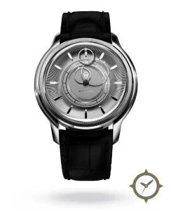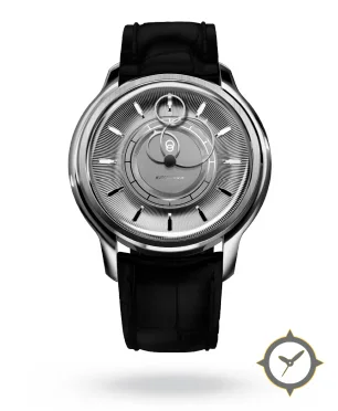 A Dress watch with a versatile 41mm case, that suits most wrists, crafted from stainless steel featuring a silver dial with a unique guilloché (radial/sunburst) finish.