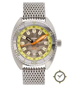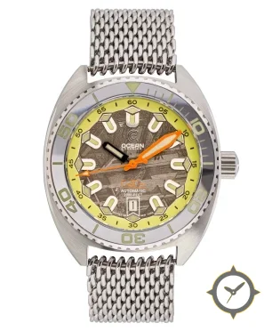 A Dive watch with a bold 50.5mm presence on the wrist, crafted from stainless steel featuring a brown dial with a unique meteorite finish.