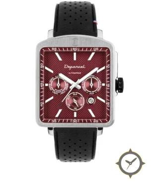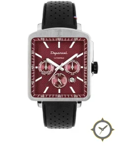 A Dress watch with a bold 42mm presence on the wrist, crafted from stainless steel featuring a crimson dial with a unique textured guilloché / cross-hatch (waffle) finish.