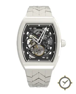 A Skeleton watch, crafted from ceramic featuring a black dial with a unique open-worked finish.