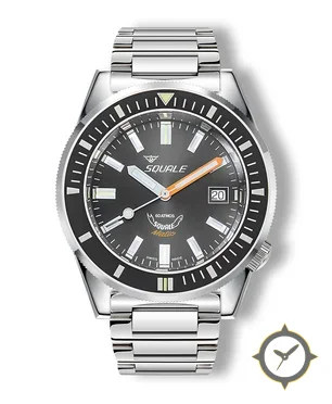 A Dive watch with a bold 46.5mm presence on the wrist, crafted from stainless steel featuring a gray dial with a unique matte finish.