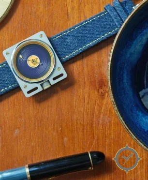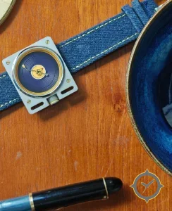 A Minimalist watch with a versatile 41mm case, that suits most wrists, crafted from stainless steel featuring a blue dial with a unique concentric ridged rings (spiral guilloché) finish.