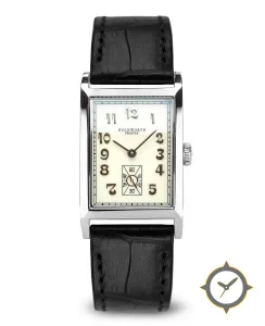 A Dress watch with a vintage-inspired 21mm case, crafted from stainless steel featuring a white dial with a unique smooth lacquer finish finish.