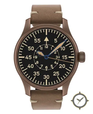 A Pilot watch with a vintage-inspired 35mm case, crafted from bronze featuring a black dial with a unique matte finish.