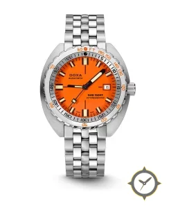 A Dive watch with a bold 45mm presence on the wrist, crafted from stainless steel featuring a orange dial with a unique matte finish.