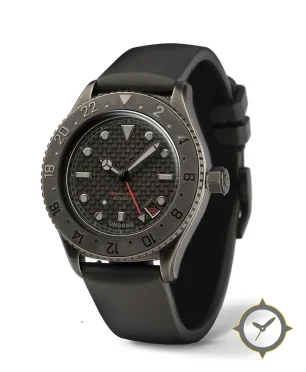 A Tool watch with a bold 46mm presence on the wrist, crafted from stainless steel featuring a gray dial with a unique textured carbon-weave / embossed pattern finish.