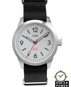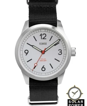 A Field watch with a bold 44mm presence on the wrist, crafted from stainless steel featuring a white dial with a unique smooth finish.