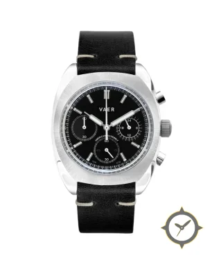 A Chronograph watch with a bold 44.5mm presence on the wrist, crafted from stainless steel featuring a black dial with a unique matte finish.