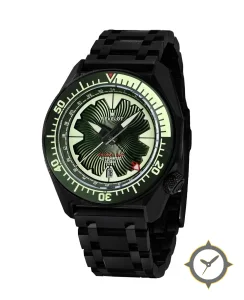 A GMT watch with a versatile 38mm case, that suits most wrists, crafted from stainless steel featuring a green dial with a unique radial guilloche / wave texture with sunburst effect finish and a true GMT complication for tracking a second time zone.