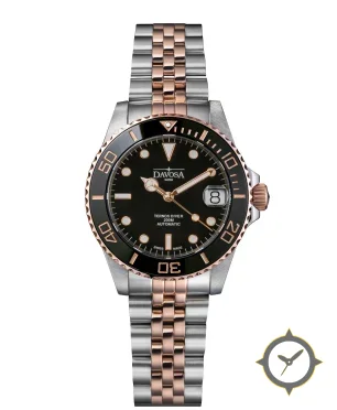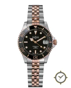 A Dive watch with a vintage-inspired 37.5mm case, crafted from stainless steel featuring a black dial with a unique glossy finish.
