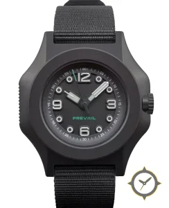 A Tactical watch with a bold 41.5mm presence on the wrist, crafted from stainless steel featuring a black dial with a unique matte finish.