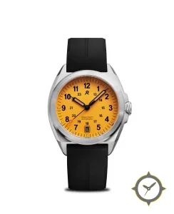 A Field watch with a vintage-inspired 31mm case, crafted from stainless steel featuring a orange dial with a unique matte finish.