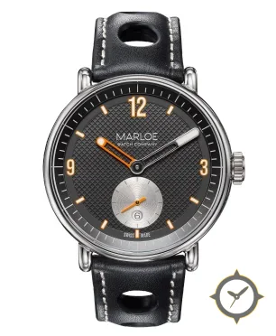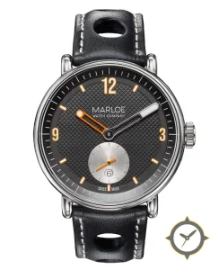 A Sports watch with a vintage-inspired 37.5mm case, crafted from stainless steel featuring a gray dial with a unique textured waffle / guilloché crosshatch finish.