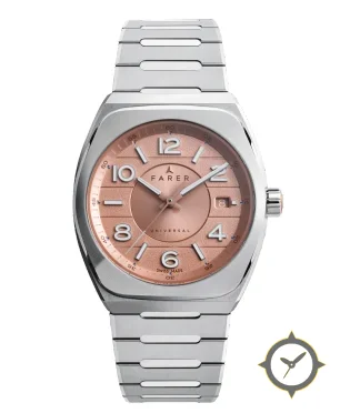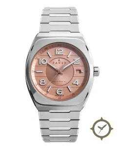 A Sports watch with a versatile 39.5mm case, that suits most wrists, crafted from stainless steel featuring a gold dial with a unique brushed sunburst center with fine grained/striped texture and horizontal grooves finish.