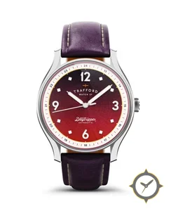 A GMT watch with a bold 44.5mm presence on the wrist, crafted from stainless steel featuring a red dial with a unique sunburst finish and a true GMT complication for tracking a second time zone.