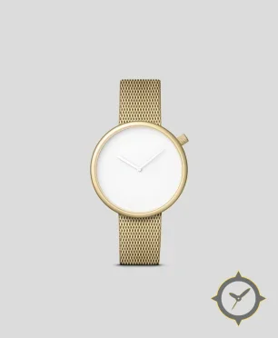 A Minimalist watch with a bold 42mm presence on the wrist, crafted from gold featuring a white dial with a unique smooth matte finish.