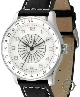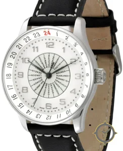 A GMT watch, crafted from stainless steel featuring a white dial with a unique matte finish, perfect for the global traveler with its world-time function.