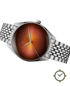 A Dress watch with a bold 48.5mm presence on the wrist, crafted from stainless steel featuring a brown dial with a unique sunburst fumé finish.